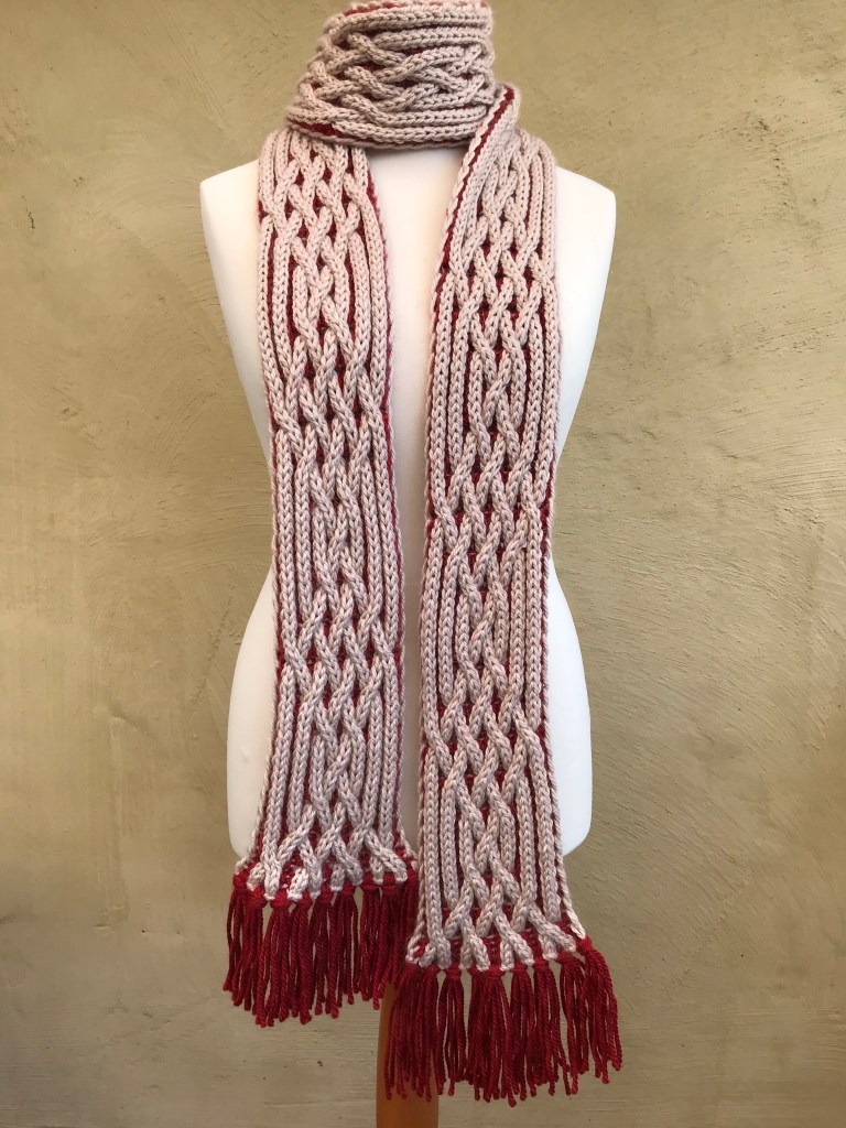 I love the word ‘concordance’, meaning ‘ agreement or consistency’ and I think it suits this pattern perfectly. The columns of brioche look like cords, and the arrangement of cables reminds me of a structured, orderly kind of dance.